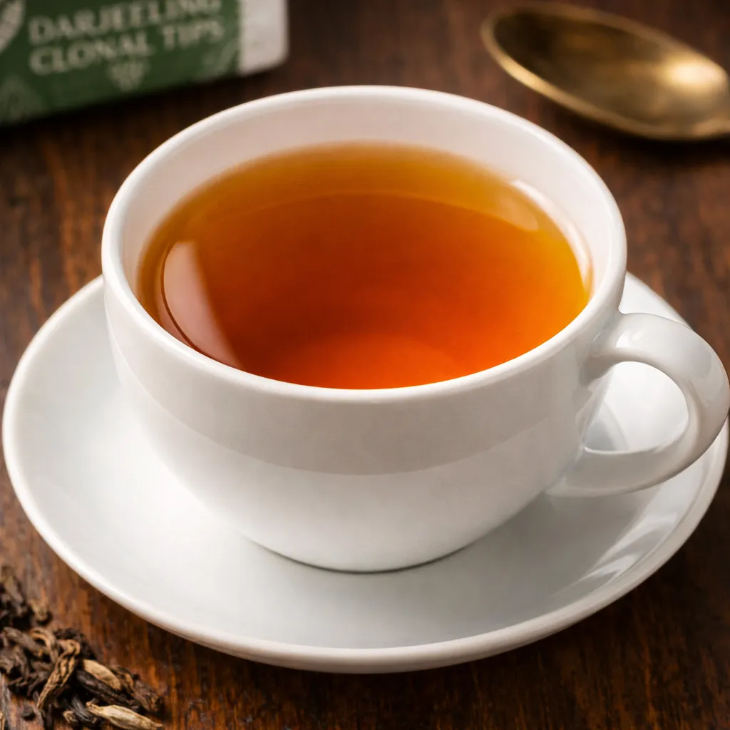The tea brews into a clear, bright liquor with a light body and refined aroma. On the palate, it reveals soft floral notes with a gentle sweetness, balanced by a clean and smooth finish. The clonal varietals bring consistency to the cup while preserving the elegant freshness Darjeeling teas are known for.